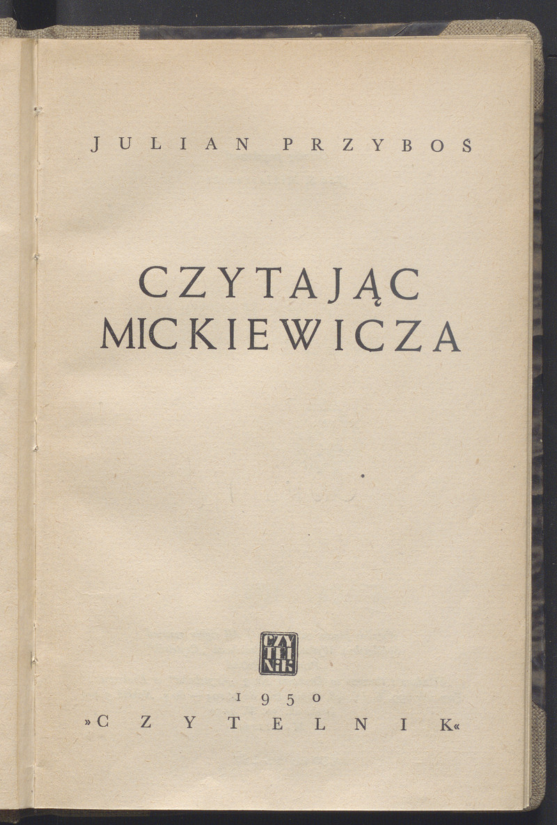 Czytając Mickiewicza / Julian Przyboś. - Wydanie 3 powiększone - Warszawa : Państwowy Instytut Wydawniczy, 1965. - 307 stron ; 22 cm.
