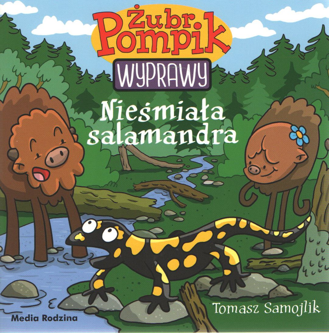 Kolejny tomik rozrywkowo-edukacyjnego cyklu prezentującego dzieciom faunę i florę parków narodowych. Gorczański Park Narodowy wita żubry pięknymi widokami. Nieopodal uroczej, lśniącej od deszczu polany, Pompik i Polinka odkrywają coś zachwycającego: błyszczące niczym klejnot, czarno-żółte stworzenie, które jest… tak zawstydzone, że kamienieje w bezruchu. Jak żubry mają przekonać nieśmiałą salamandrę, że jest najbardziej niezwykłym zwierzęciem w okolicy?