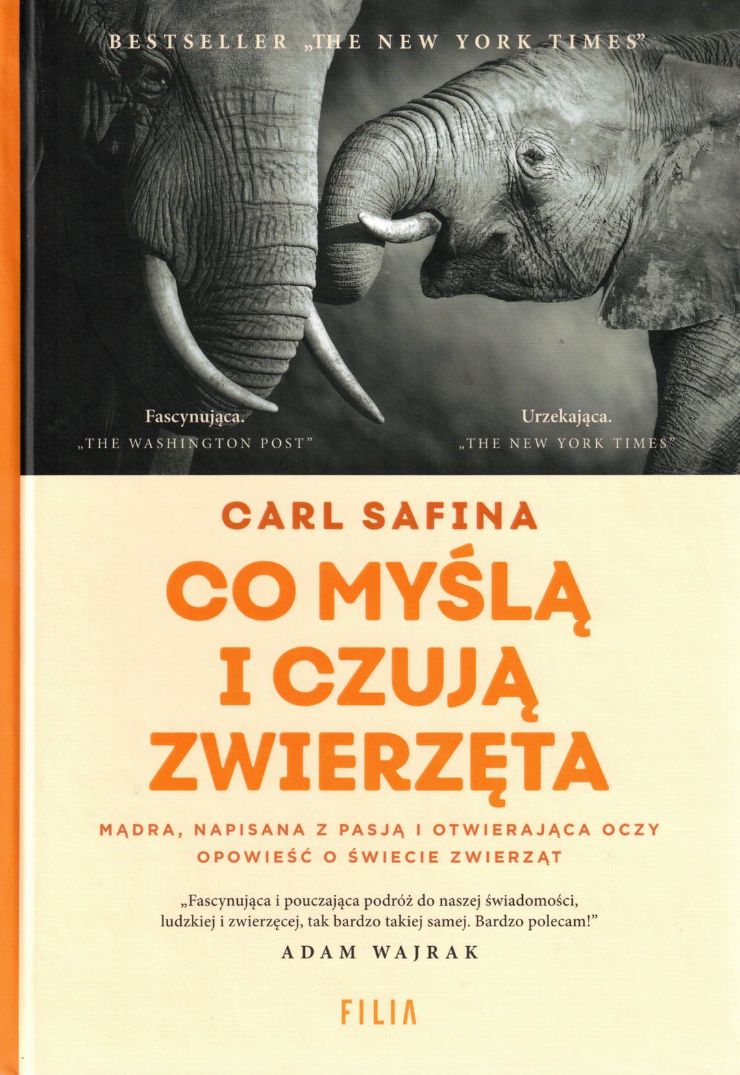 Na okładce informacja: Mądra, napisana z pasją i otwierająca oczy opowieść o świecie zwierząt. "Fascynująca i pouczająca podróż do naszej świadomości, ludzkiej i zwierzęcej, tak bardzo takiej samej. Bardzo polecam!" Adam Wajrak.