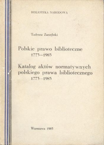 Zarzębski Tadeusz. Katalog aktów normatywnych polskiego prawa bibliotecznego 1773-1983