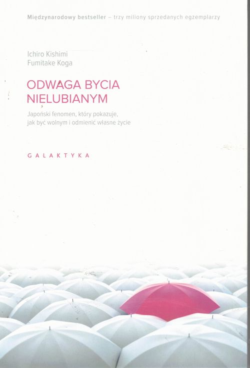Ciesząca się w Azji ogromną popularnością książka Odwaga bycia nielubianym, która rozeszła się w ponad trzech milionach egzemplarzy, pokazuje, jak stać się człowiekiem, jakim naprawdę chcesz być. Oparta na motywach teorii Alfreda Adlera - obok Freuda i Junga jednego z trzech wielkich dziewiętnastowiecznej psychologii - książka ta jest pouczającą dyskusją między filozofem a młodym człowiekiem. Ich dyskusja w przystępny sposób pokazuje, że każdy decyduje o własnym życiu i może zrzucić jarzmo przeszłości, zwątpienia oraz cudzych oczekiwań. Przedstawiony w niej punkt widzenia wyzwala, daje odwagę do zmiany i do ignorowania ograniczeń stawianych przez otoczenie i samego siebie.Jest to książka nie tylko niezwykle przystępna, ale i o przełomowym znaczeniu. Z jej mądrości zaczerpnęły już miliony czytelników odkrywając jak żyć swoim własnym, zgodnym z samym sobą życiem. [lubimyczytac.pl]